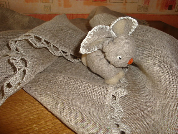 Tablecloth. Naturally gray linen with a beautiful crocheted lace. 100% linen. Handmade. A great gift.