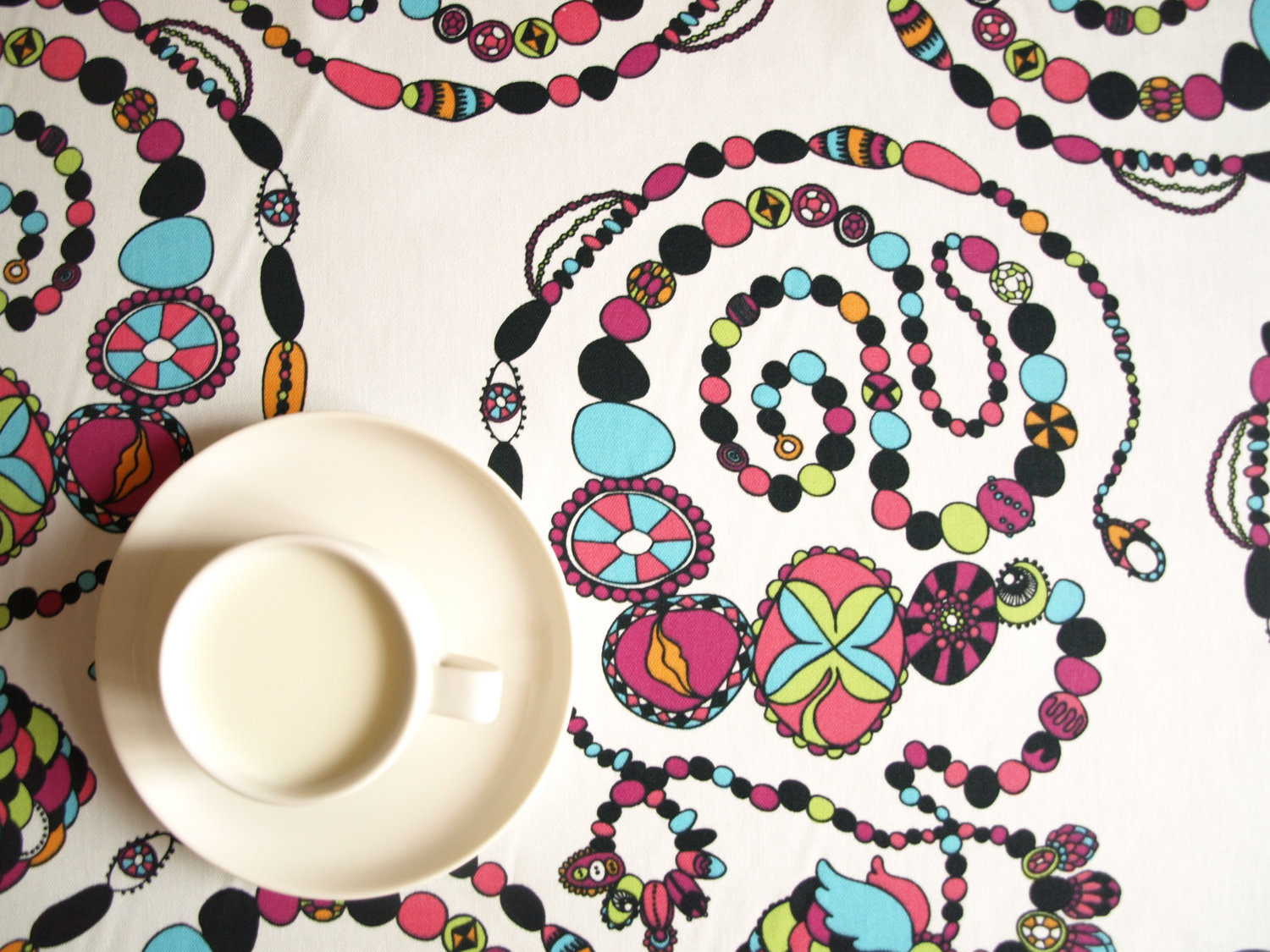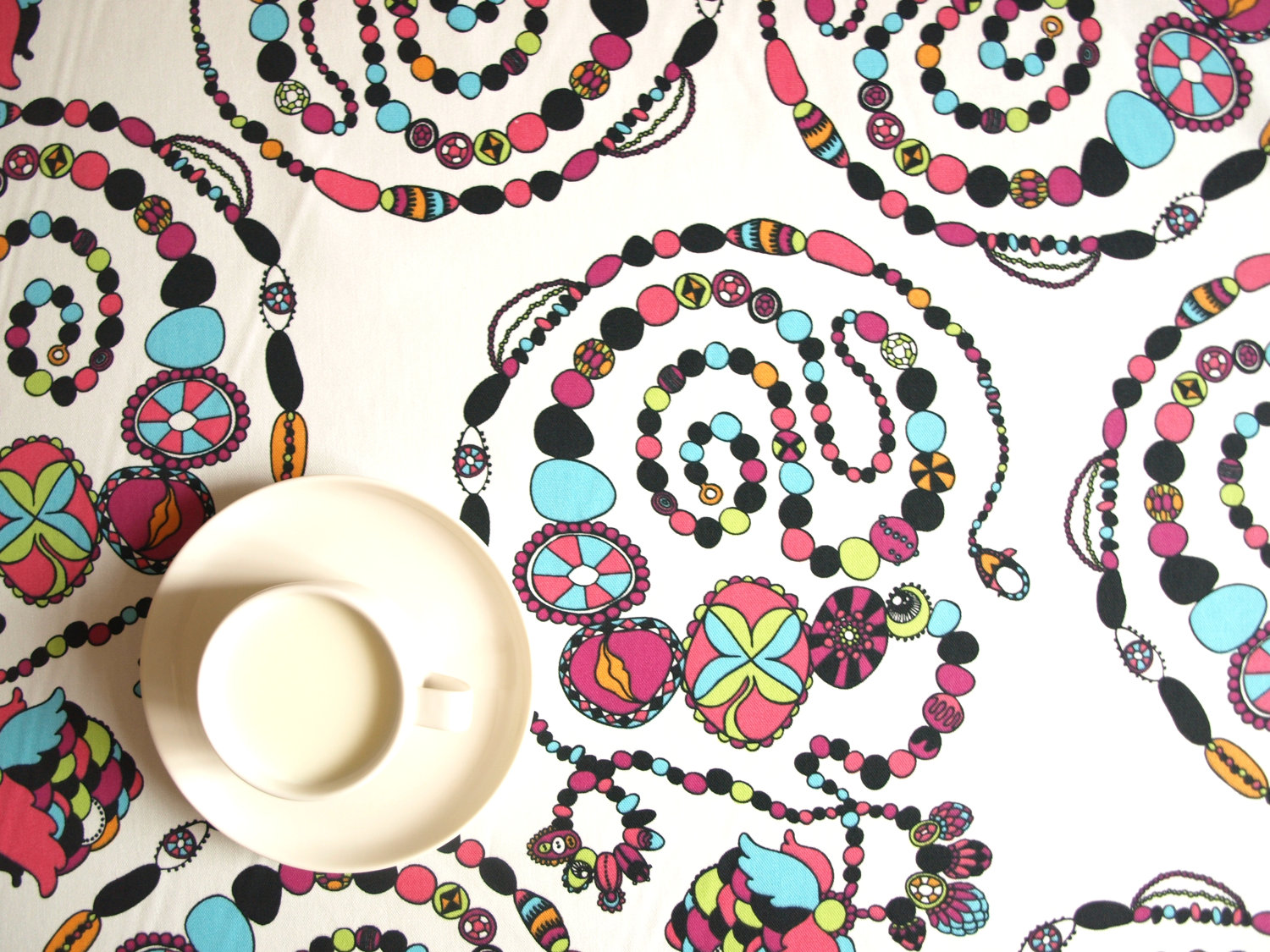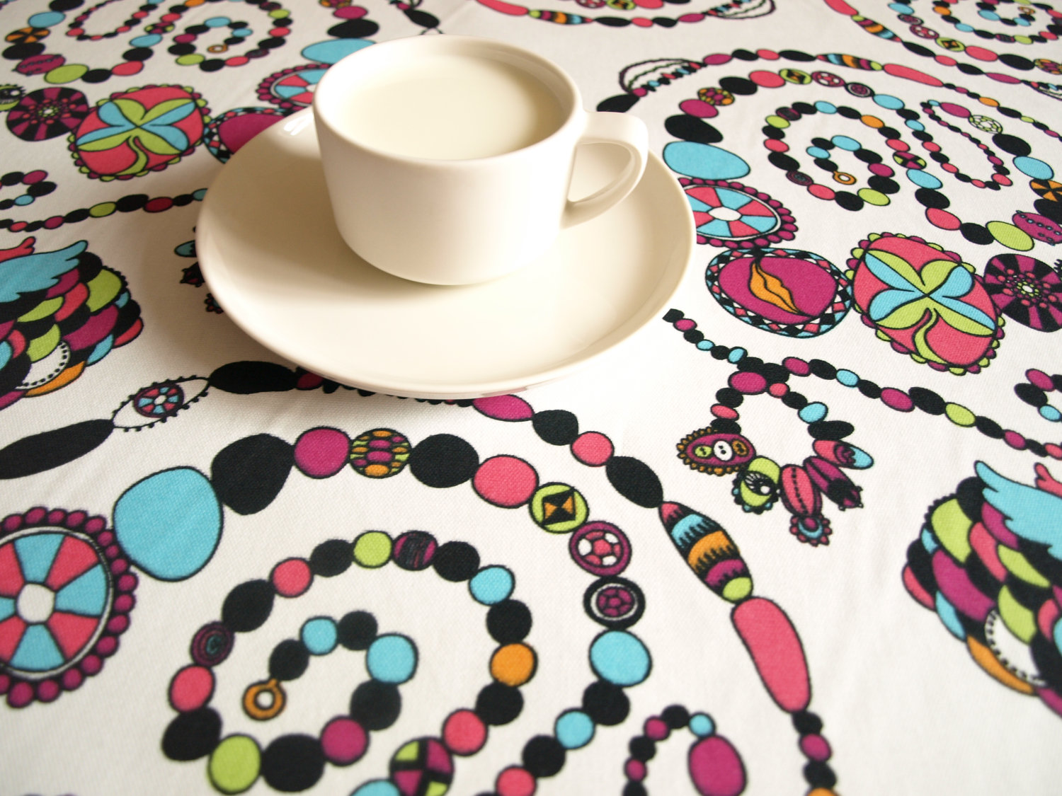 Tablecloth white abstract beads jewelry 37″x 37″ or made to order your size, also napkins, table runner , pillow cover available, great GIFT