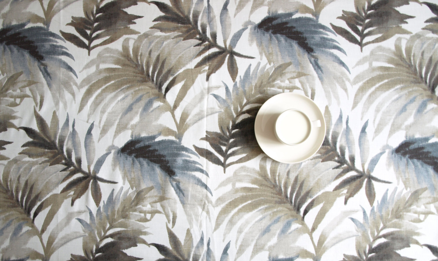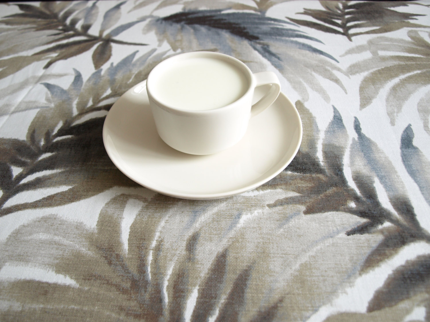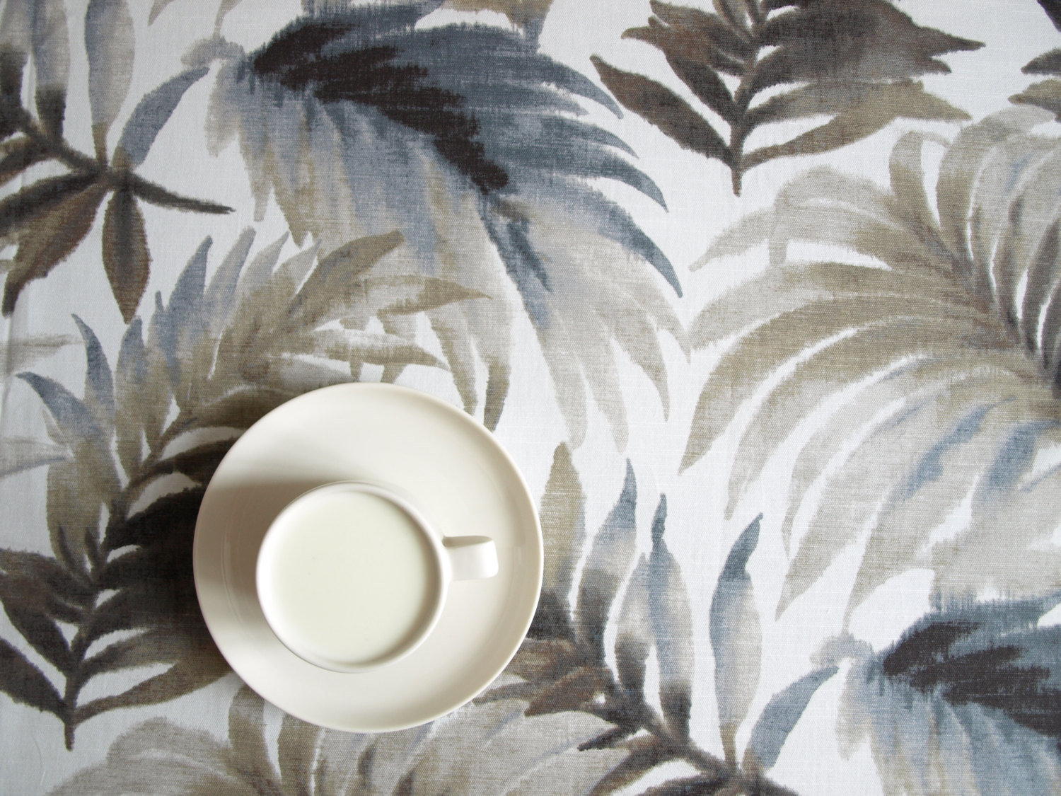 Tablecloth white beige brown blue leaves Abstract Modern Scandinavian decor , runner , napkins , pillow , curtain available, great GIFT