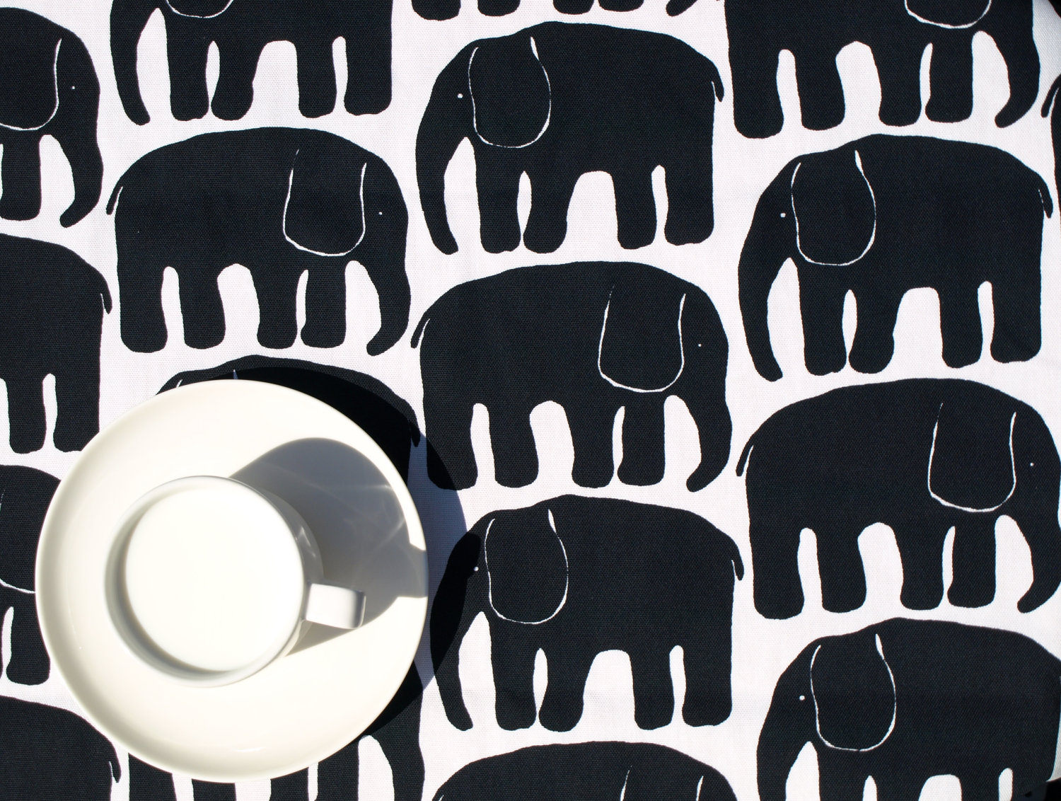 Tablecloth white black elephants , modern table cloth , also napkins , table runner , curtains available , great GIFT