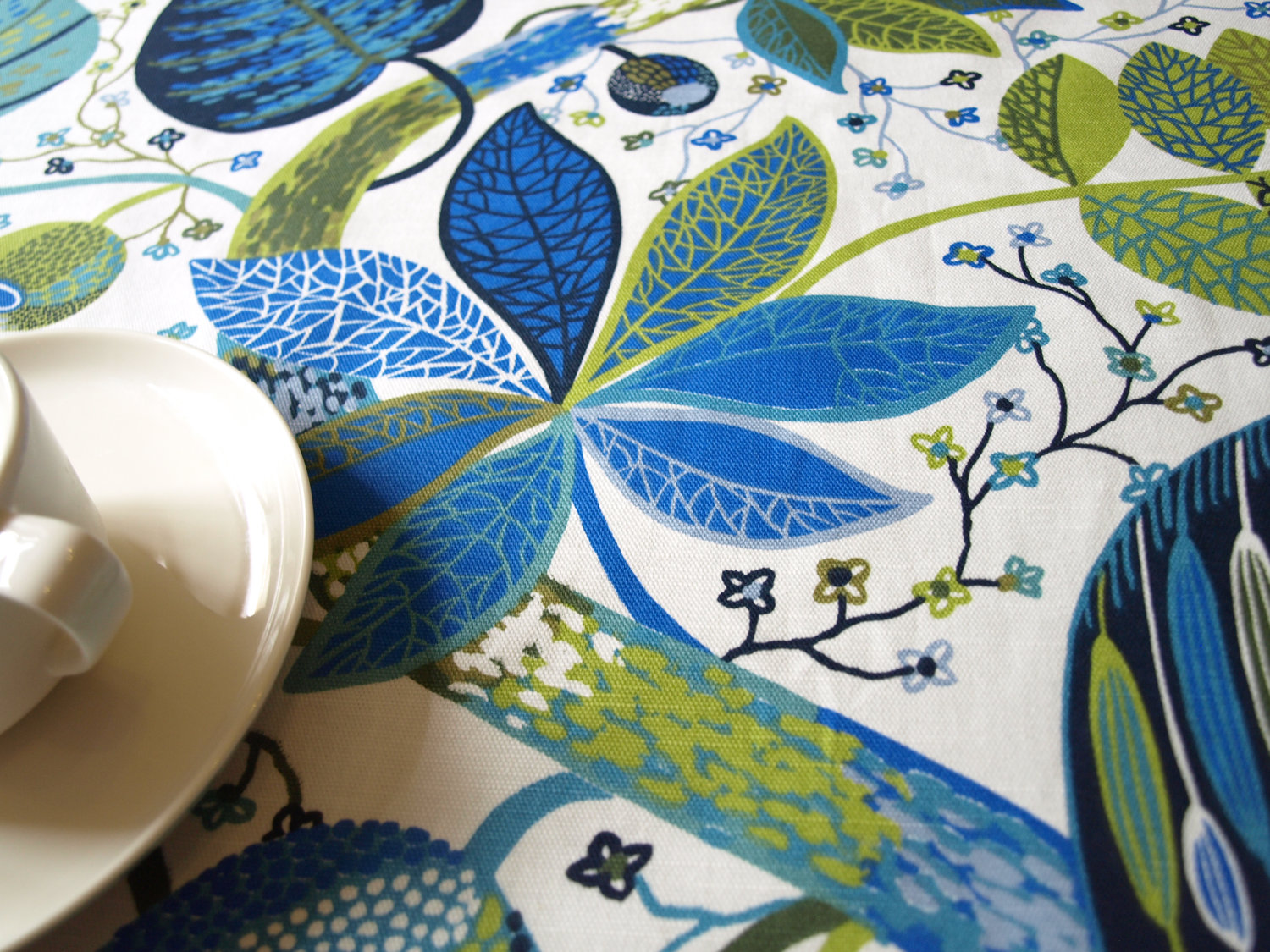 Tablecloth white blue green abstract tree flowers Scandinavian Design , table runner , napkins , pillow , curtains available, great GIFT