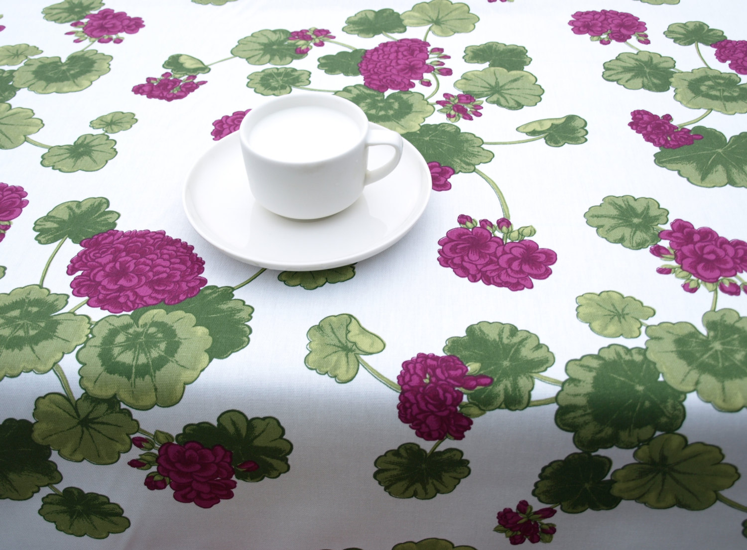 Tablecloth white green purple Geranium Botanical Modern Scandinavian Design ,also napkins , runners , curtains available, great GIFT