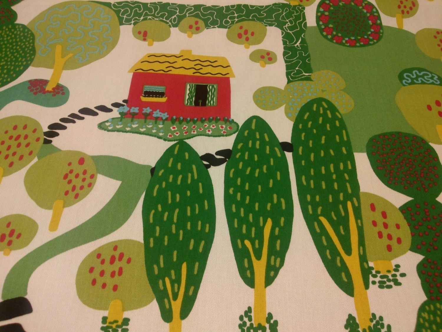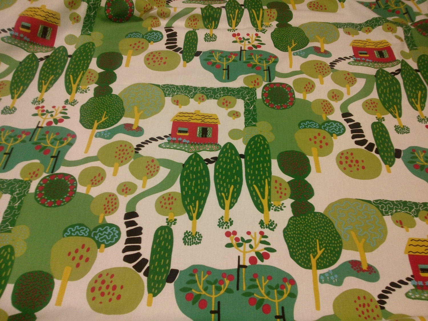 Be the first to review “Tablecloth White green trees pink Houses Kids room Modern Scandinavian Design , runner , napkins , pillow , curtain available, great GIFT”