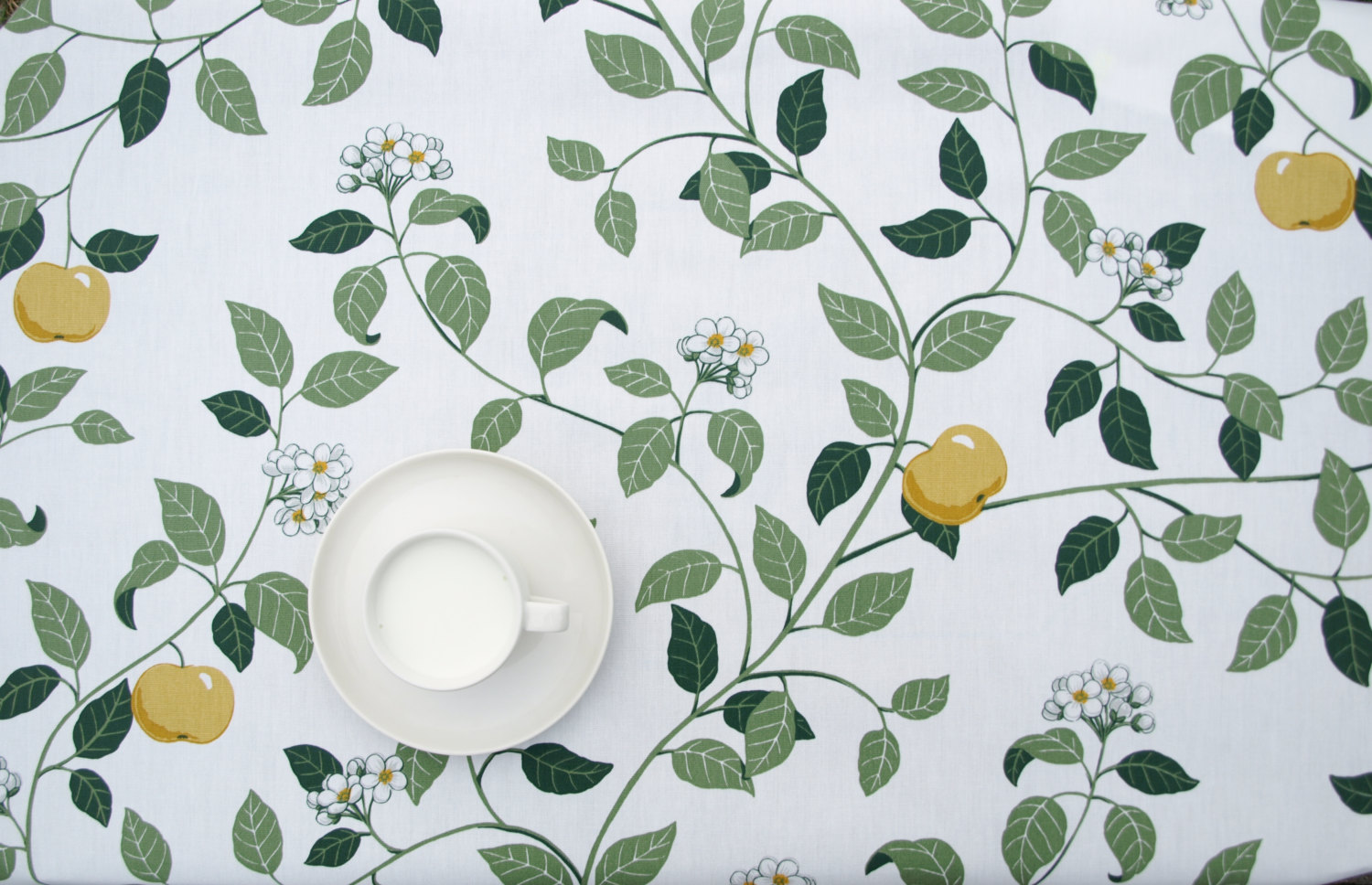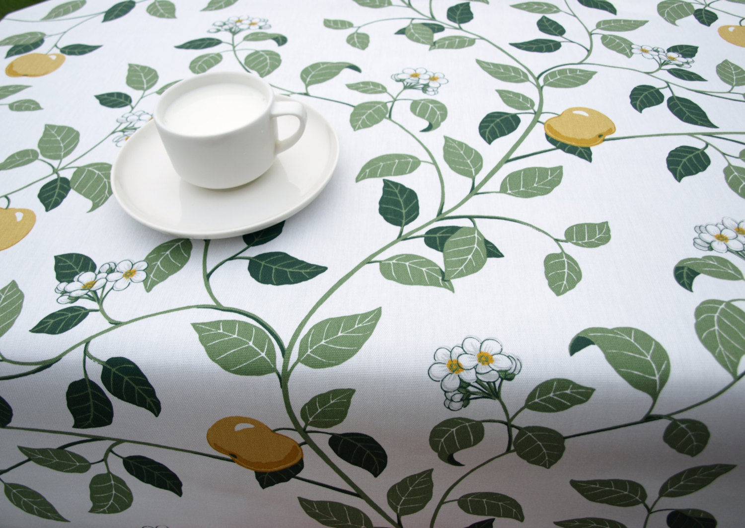 Tablecloth white green yellow apples Apple tree Modern Scandinavian Design ,also napkins , runners , curtains available, great GIFT