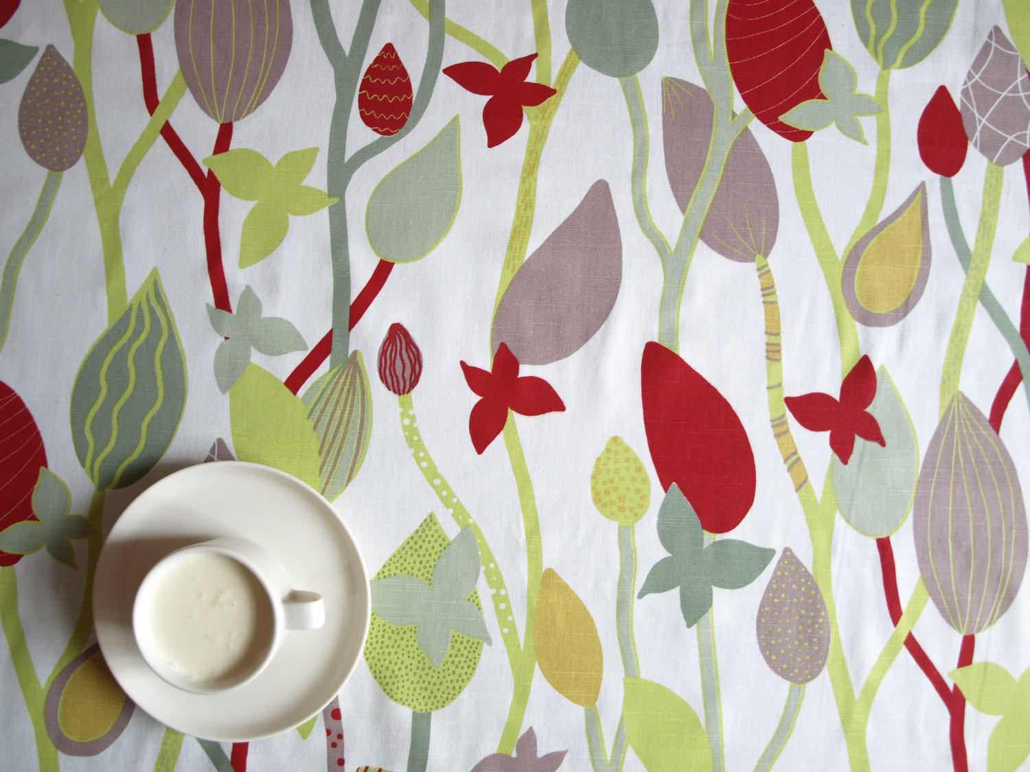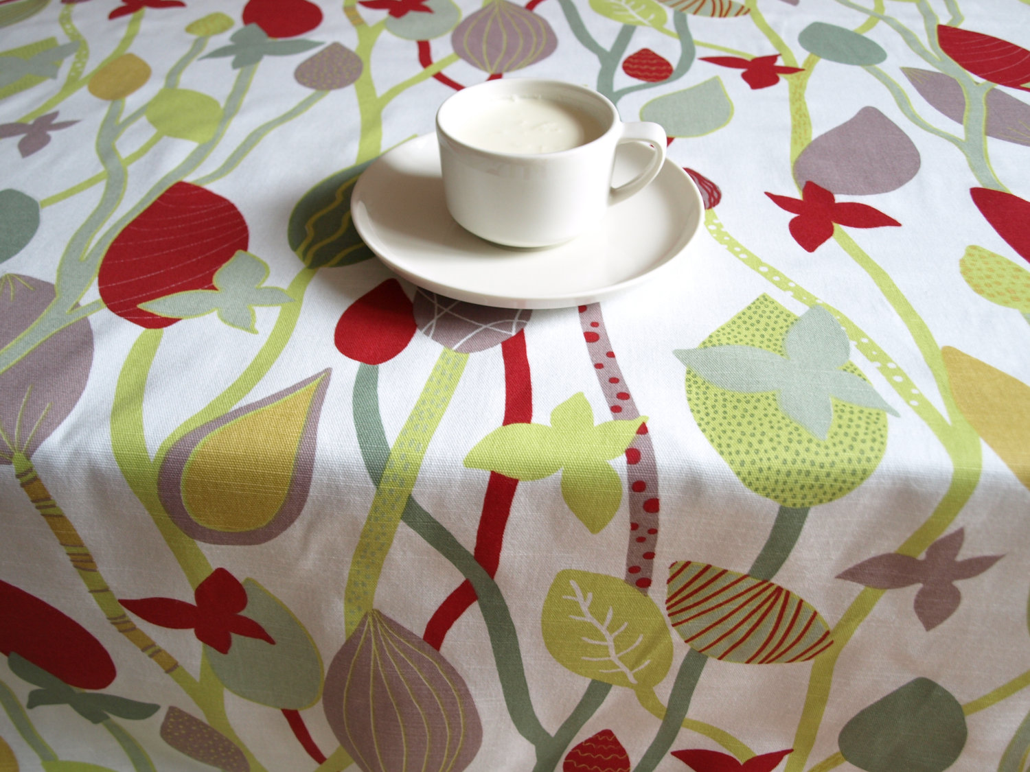 Be the first to review “Tablecloth white grey green purple red abstract flower 37″x37″ or made to order your size, also napkins, table runner available, with GIFT”