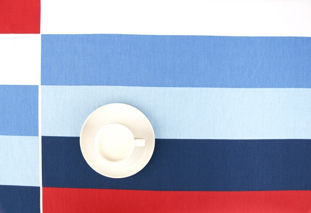 Be the first to review “Tablecloth white sky blue deep blue red fat lines Striped table cloth, runner , napkins , pillow , curtain available, great GIFT”