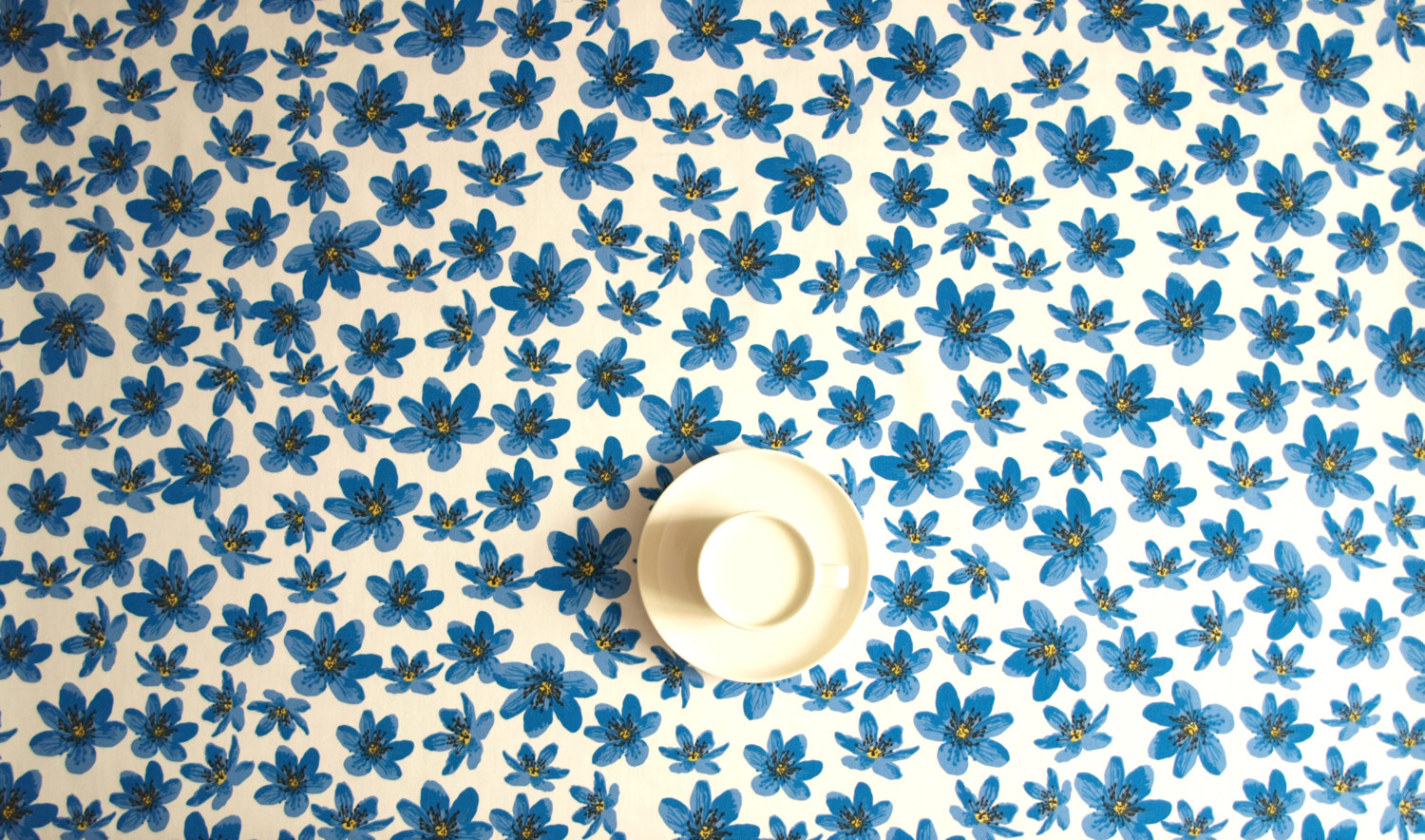 Tablecloth white small blue anemones flowersScandinavian Design , also curtains , runners , napkins available, great GIFT