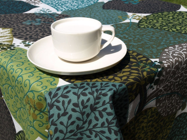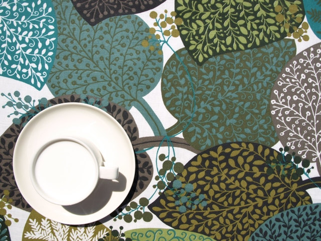 Be the first to review “Tablecloth white teal blue olive green black leaves berries Fall Autumn , table runner , napkins , curtains , pillows available, great GIFT”