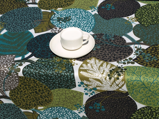Tablecloth white teal blue olive green black leaves berries Fall Autumn , table runner , napkins , curtains , pillows available, great GIFT