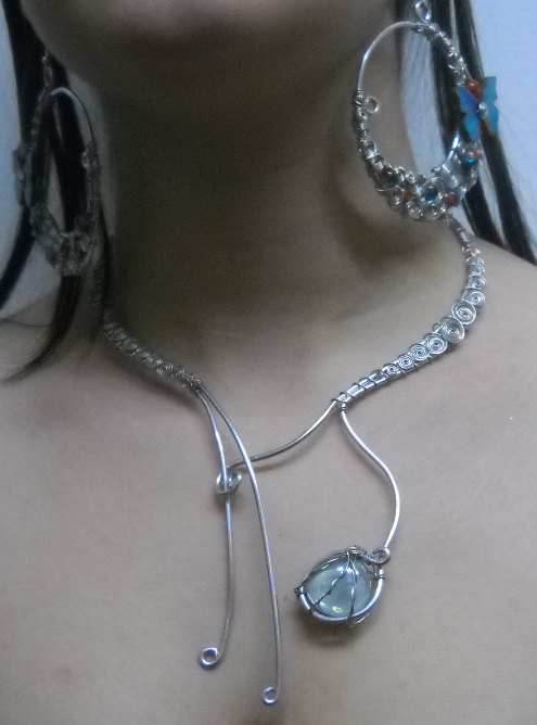 THE PALE WOMAN is a perfect necklace for parties, weddings and cosplays themed Elven or Fairy. Or simply for those who wish to re-enchant the world every day ! ~~~~~~~~~~~~~ It weighs 20 grams. ~ ~ ~ ~ ~ ~ ~ ~ ~ ~ ~ ~ ~ All Iridesce’s jewelry are handmade, original and unique. You can request a copy, to the extent of available materials (color of the cabochons for exemple), but the creation will never be completely identical. All Iridesce’s metal wire creations are solid, but keep the form that you print on them. Upon receipt of a creation, it is better if you customize your jewel to your body by exercising some pressure here and there, so that it perfectly fits the shape of your body. Once found the ideal form, the collar will keep it until you decide otherwise. All of Iridesce creations come from a smoke-free environment ! Thank you very much visiting my shop. Please contact me if you have any questions.