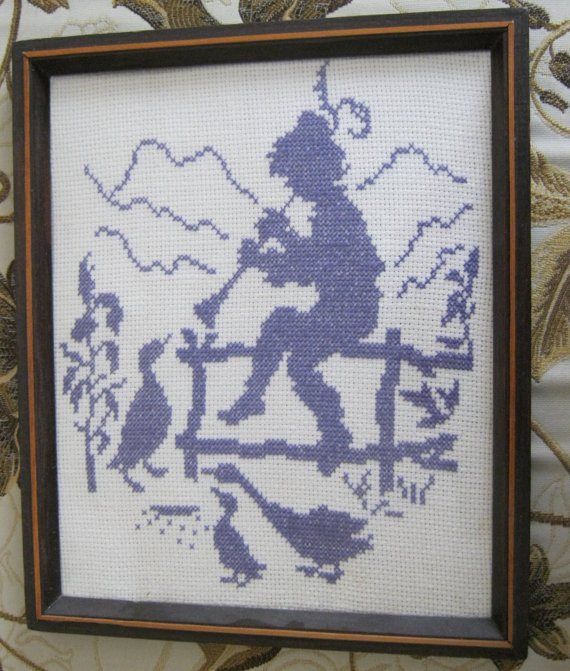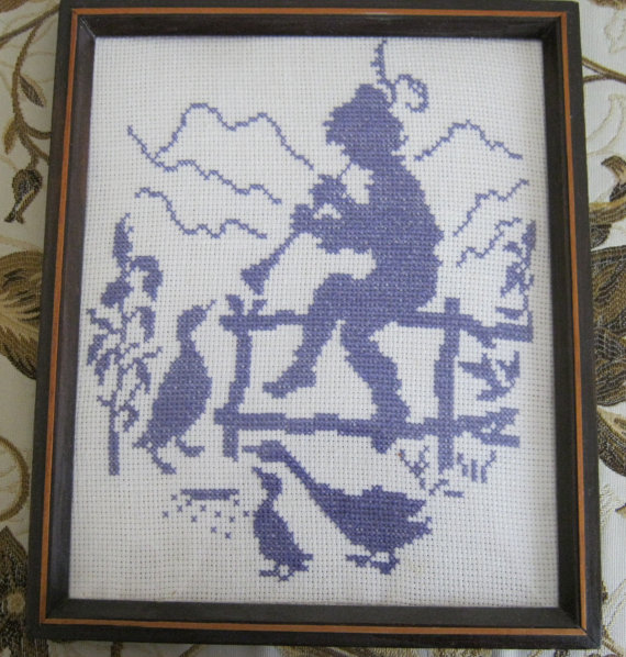 A village boy is playing horn in the middle of the meadow on this fine beautiful day. This fine cross-stitched art will be a great addition to any room, would it be a child’s room, a hallway or a kitchen. It also will be a great gift for a close friend or someone very special.