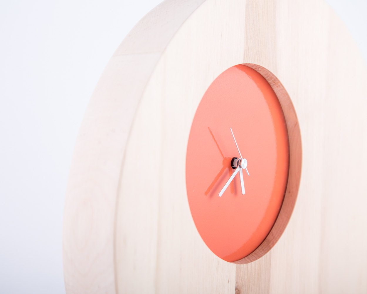 We use natural wood, and, well, the pattern of wood is unique. We always use alder for these clocks, but the pattern on it may differ slightly from the image you see here.