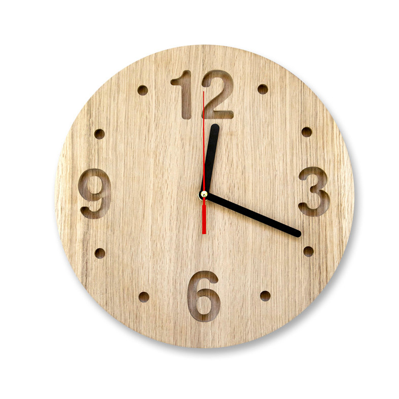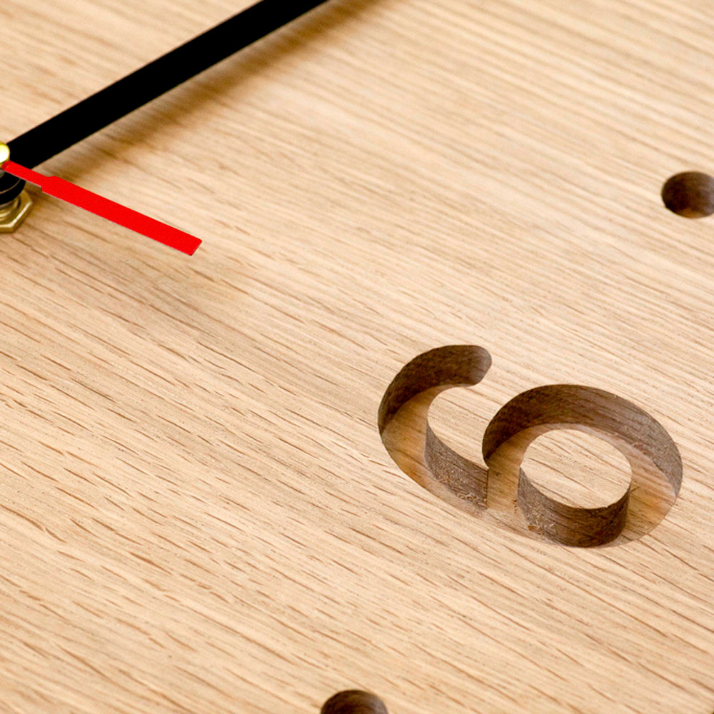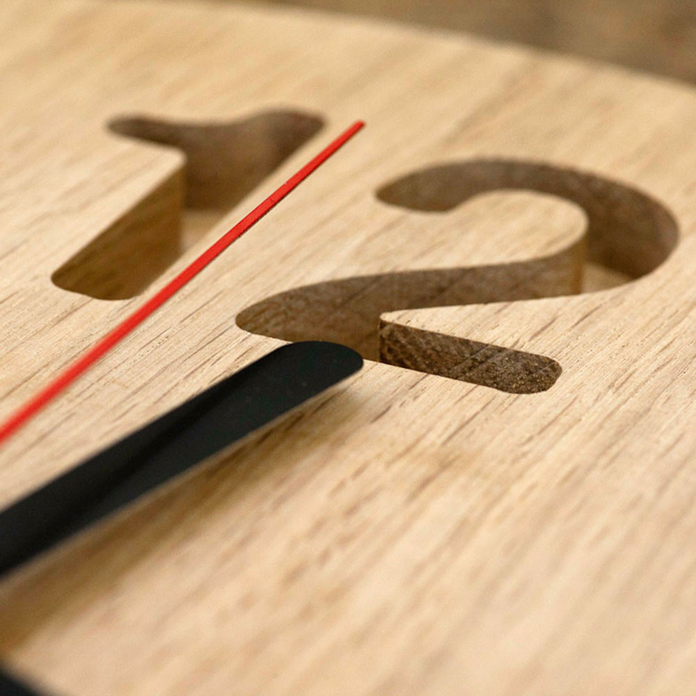 Wall clock made out of solid oak, ash or maple, minimalistic style