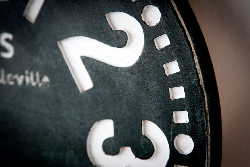 The numbers are engraved into the wood. The clock measures (11″8 in diameter, 0.6″ thick) 30 cm in diameter, 15 mm thick. One AA battery (not included).