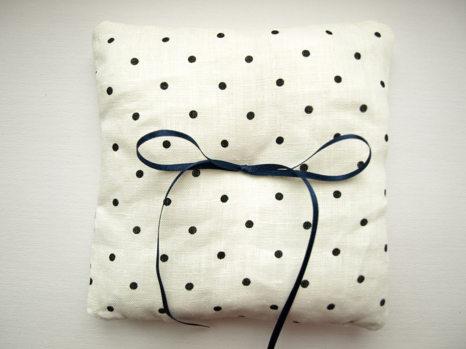 ♥ ♥ ♥ Linen Wedding party ring bearer pillow white polka dot design ♥ ♥ ♥