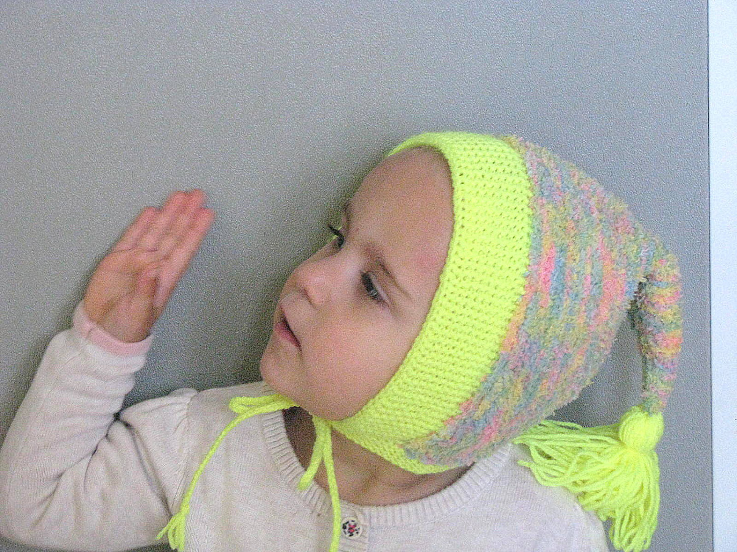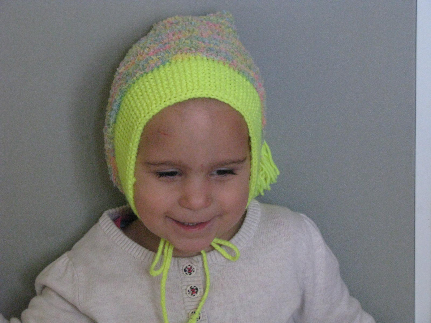 Hat tied under the chin